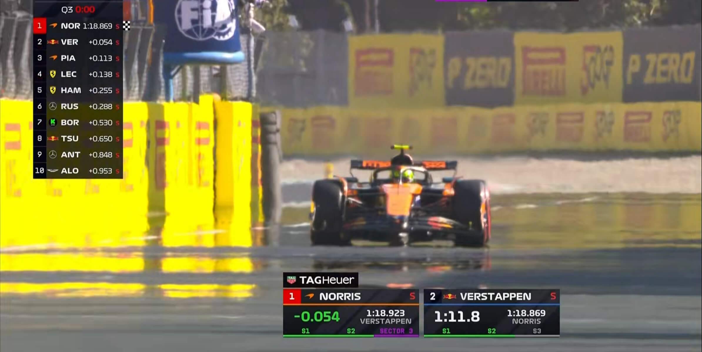 Q2首轮飞驰圈结束,维斯塔潘暂居榜首,诺里斯无有效成绩;